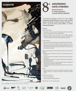 No dia 6 de março, o Centro Cultural de Paredes estará em festa para celebrar o 8º aniversário do Café Literário. O evento conta com a presença de vários elementos ligados à cultura e arte, e a apresentação da nova edição da revista cultural “Orpheu Paredes”.