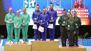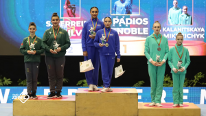 A dupla feminina Joana Silva e Sofia Ferreira conquistou a prata. Já Diana Laranjinha, Melanie Rodrigues e Ema Fernandes conseguiram o bronze em grupo femininos. A Taça do Mundo de Ginástica Acrobática aconteceu na Maia, onde decorreu, também, o International Acro Cup entre sexta-feira e domingo.